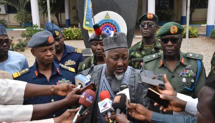 The Honourable Minister of Defense (HMOD), Mohammed Badaru Abubakar CON mni has reiterated the Federal Government’s commitment to the development of the nation’s indigenous institutions to enhance the technological development of the country. The Minister stated this at the Air Force Institute of Technology (AFIT) during his tour of critical military institutions within Kaduna.