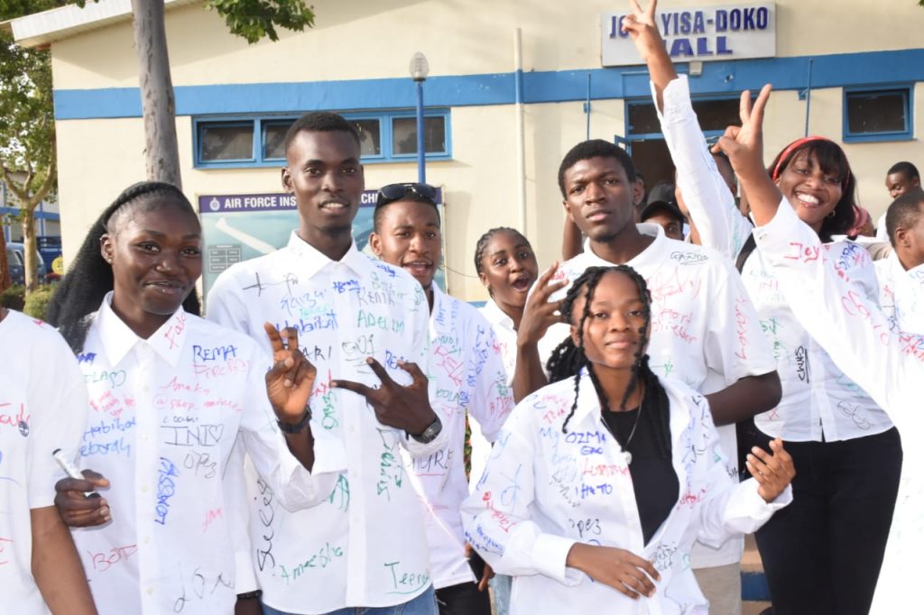It was time to jubilate as final year students of Air Force Institute of Technology (AFIT) wrote their last paper today, 2 November, 2023. The students who took to the streets within AFIT danced, sang and wrote slogans on their clothes to mark their final day as students of AFIT.