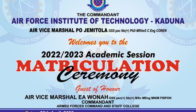 - The Commandant Air Force Institute of Technology Air Vice Marshal PO Jemitola wishes to invites all new students and the general public to her matriculation ceremony for 2022/2023 academic session.